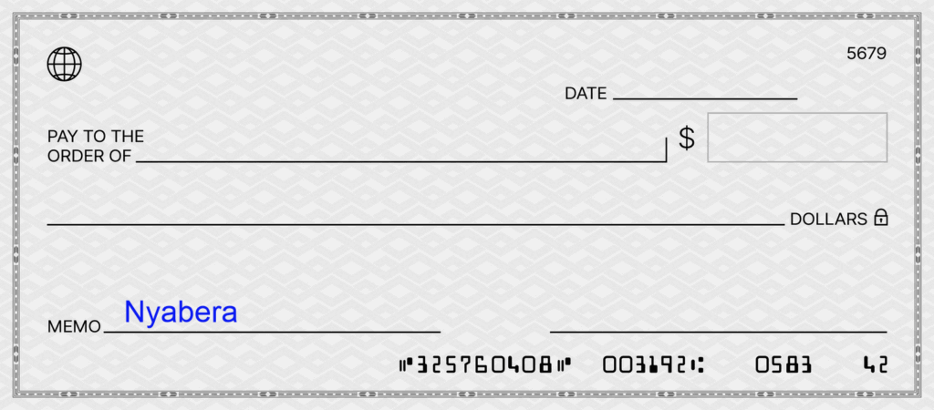 Place “Nyabera” on the memo line